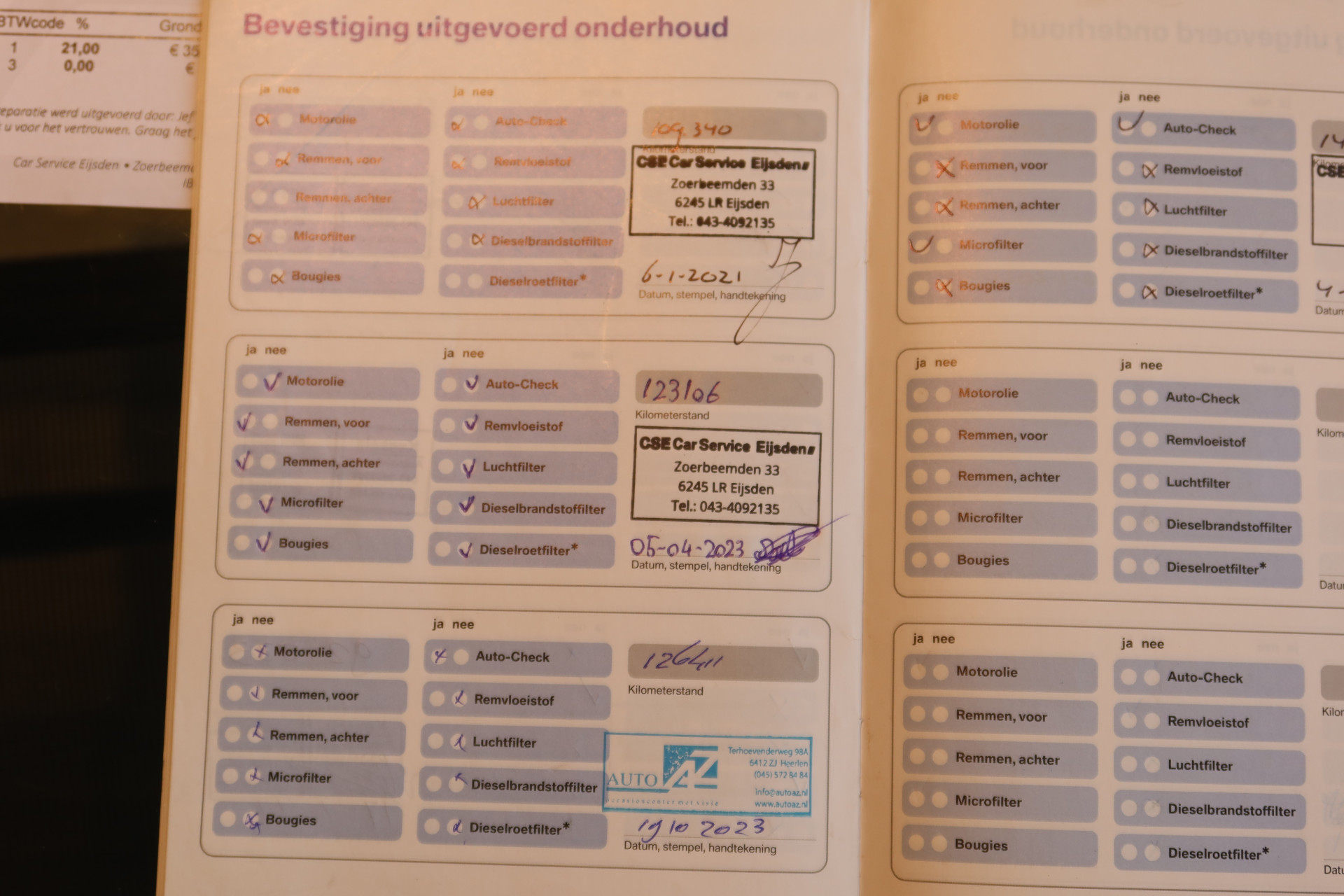 - Onderhoudsboekje aanwezig?