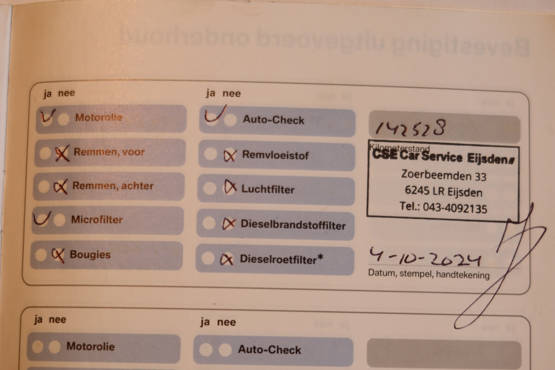- Onderhoudsboekje aanwezig?
